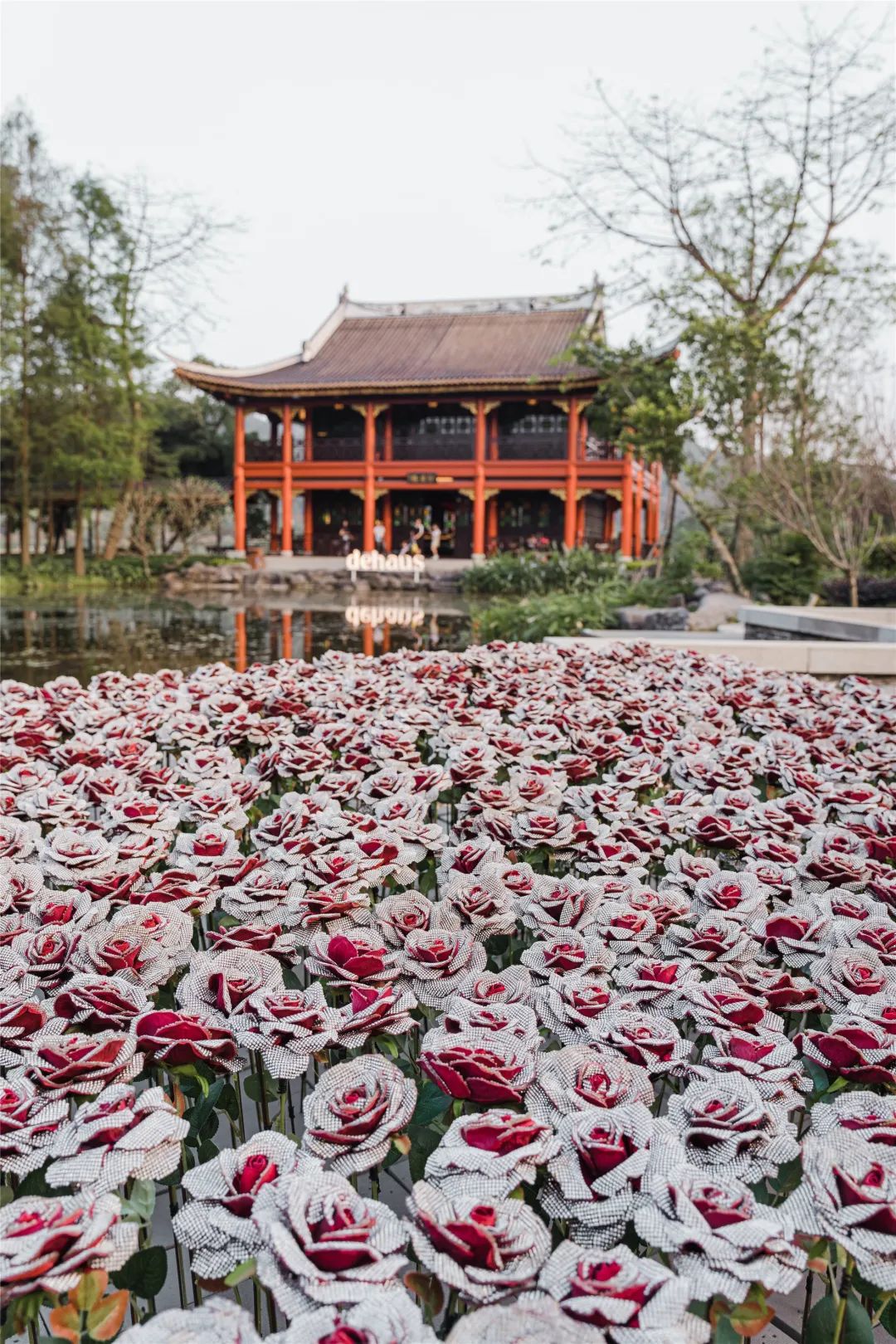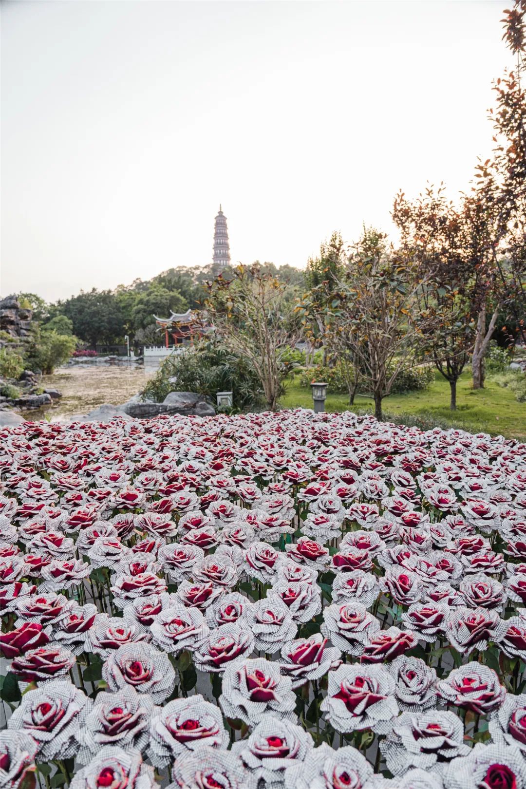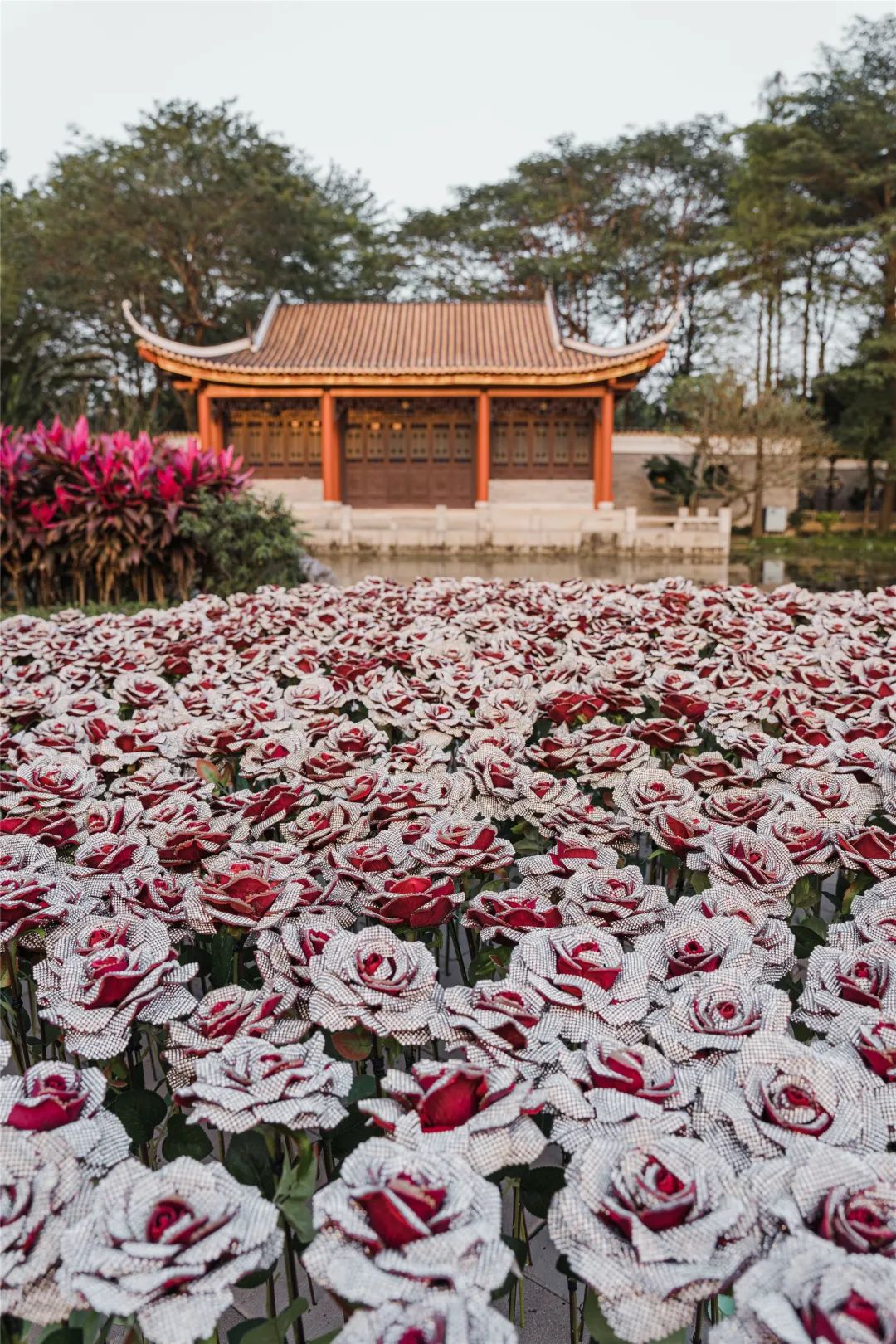 石玫瑰”被安插于自然界中,观众也许会产生关于虚实的疑问,究竟这是否真的花、真的玫瑰、真的钻石?而种种的疑问,会因为场地的改变而变