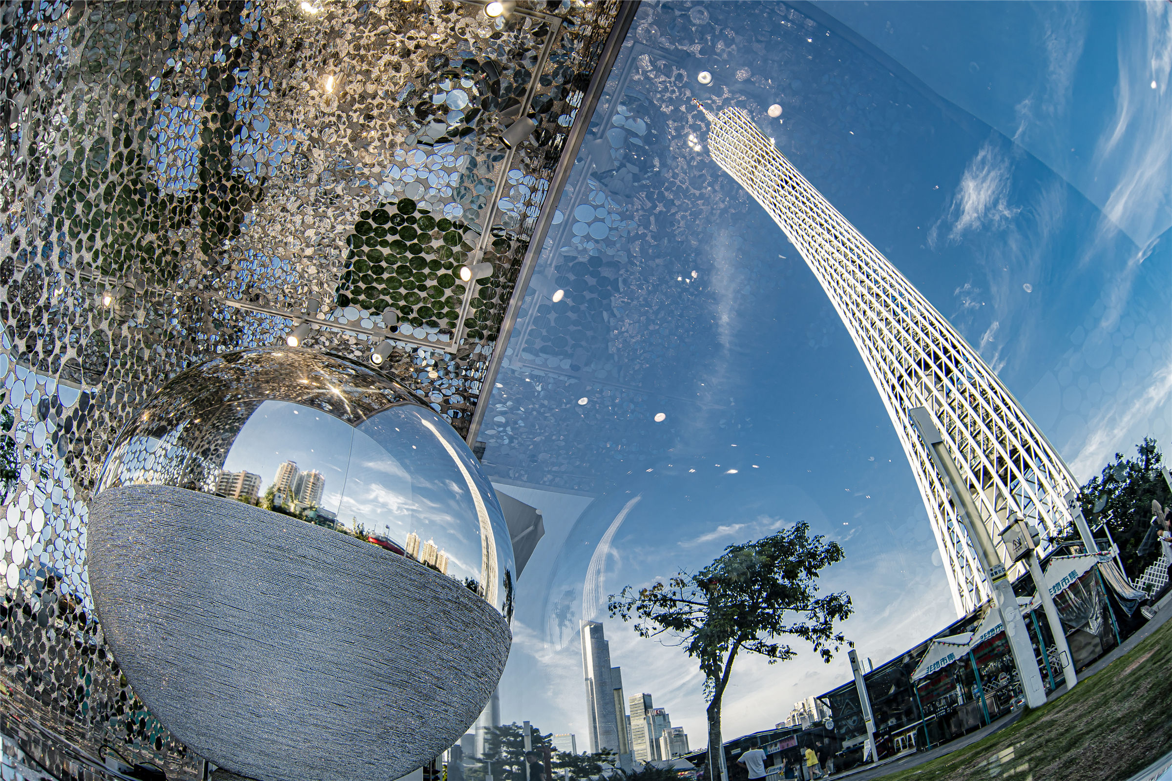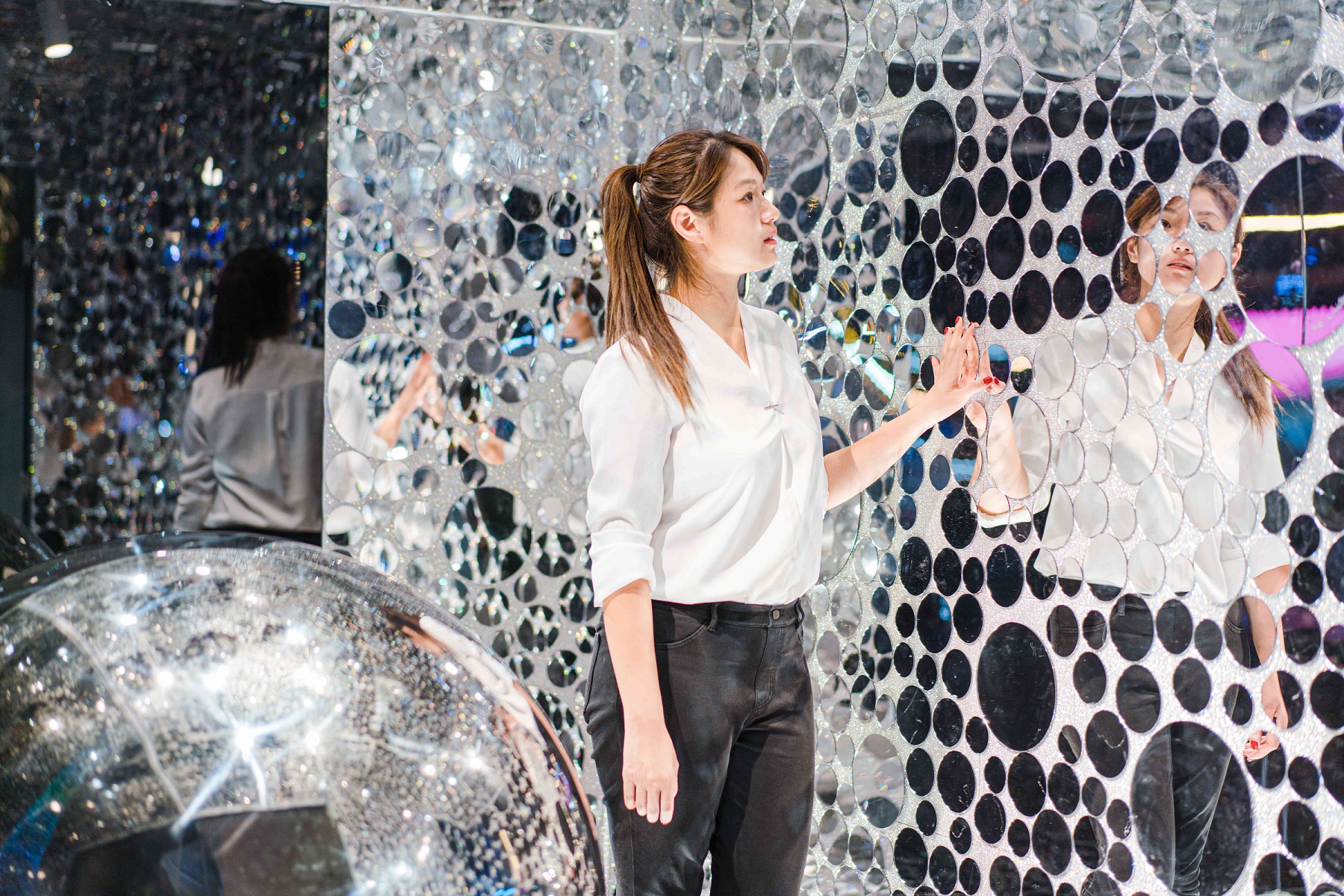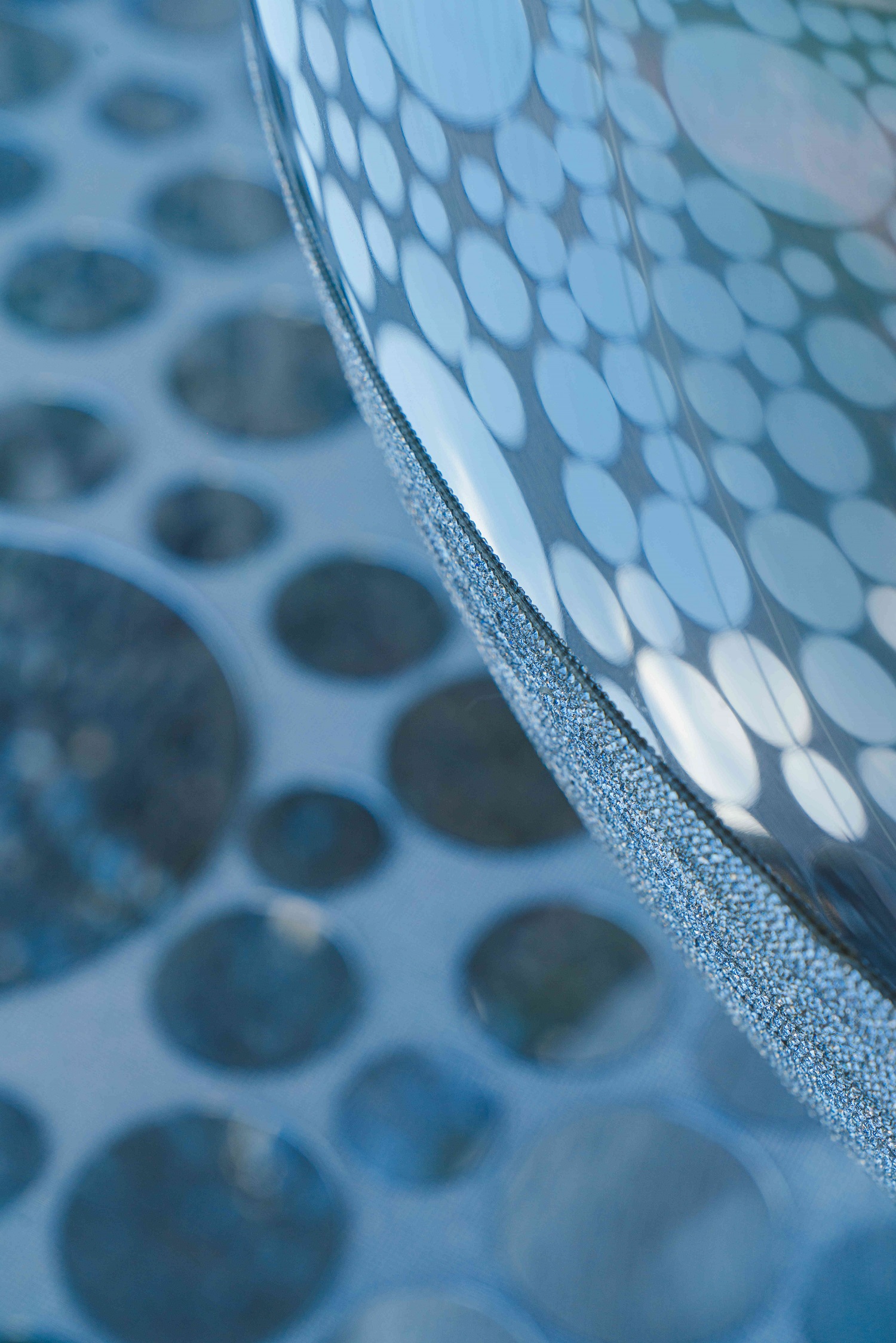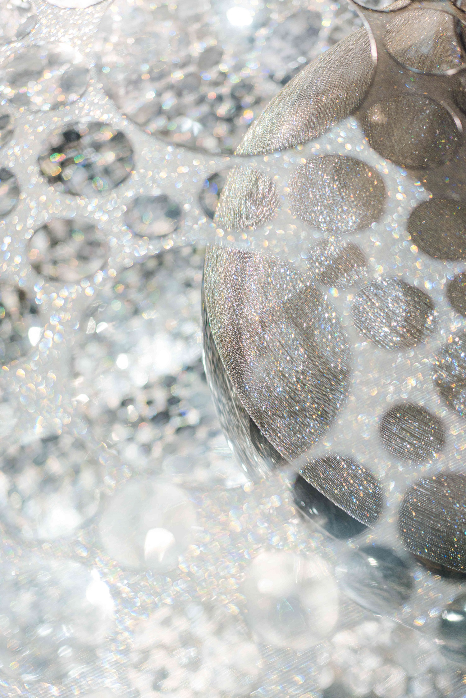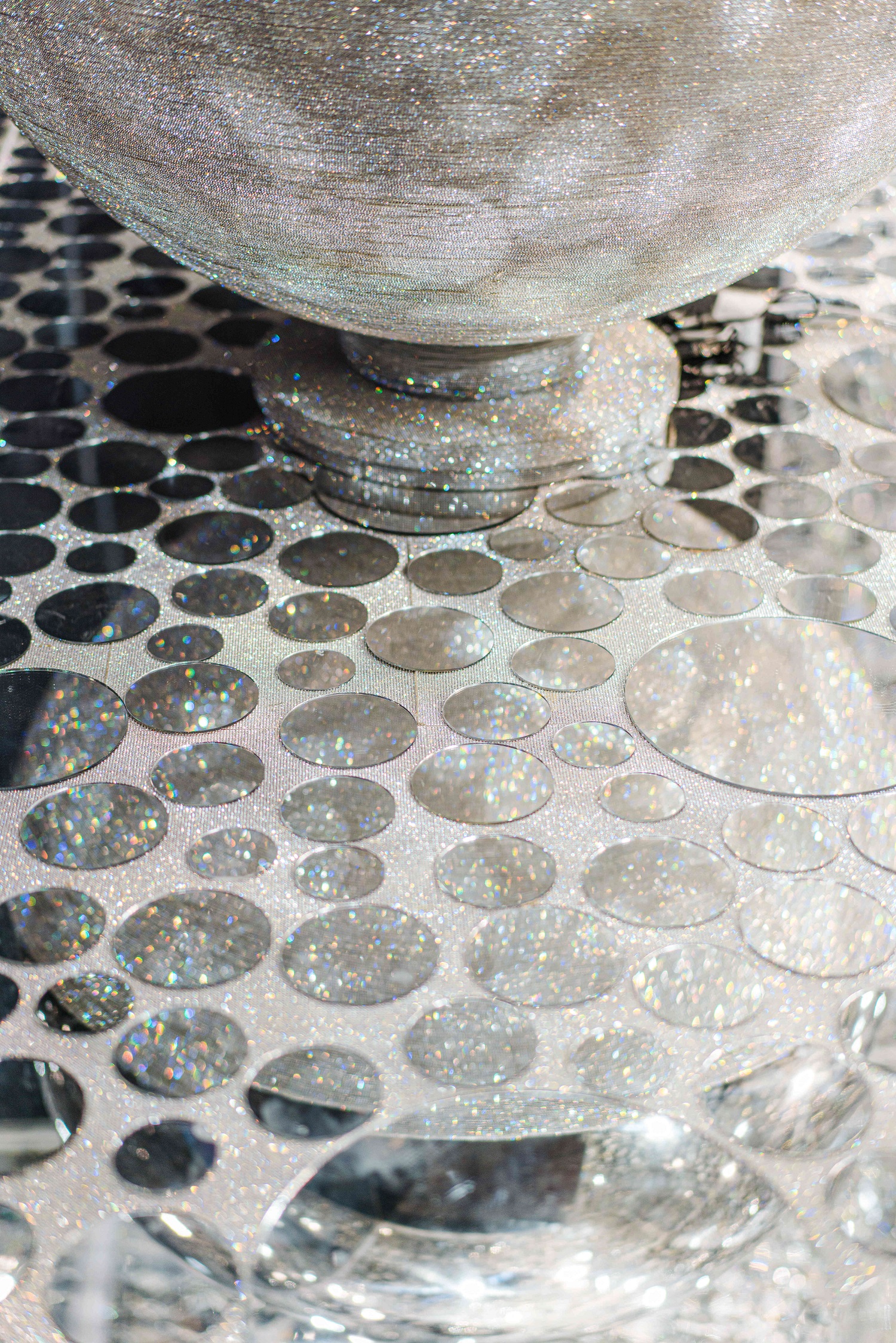 艺术家用带有水钻的钢铁球体以及无数大小不一的圆形镜面为我们创造了一个,看似不现实,而又真实存在,却无法触及的空间。球体和镜面使玻璃洒进的阳光再一次反射,让空间外的真实景象与空间内的虚幻闪耀,魔法般融合,呈现出虚幻的模样。让观众与作品和这座城市之间同时产生互动,而看到的却只是虚幻的影像。